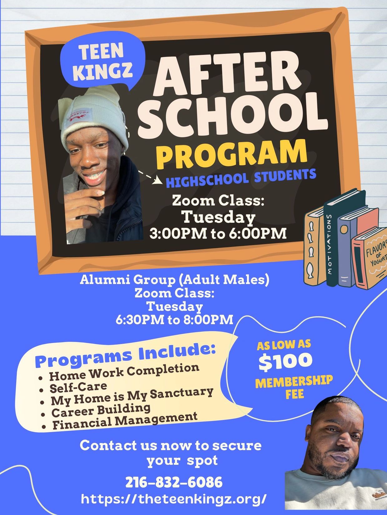 The mission of the Teen Kingz Alumni Group is to continue supporting young men as they transition into adulthood by providing ongoing development, mentorship, and community. We aim to strengthen the foundations built in the Teen Kingz program self-care, home life, career development, and financial responsibility while guiding alumni through real-world challenges with accountability, confidence, and leadership. Our mission is to empower every young man to rise with character, discipline, and purpose as he steps into manhood.